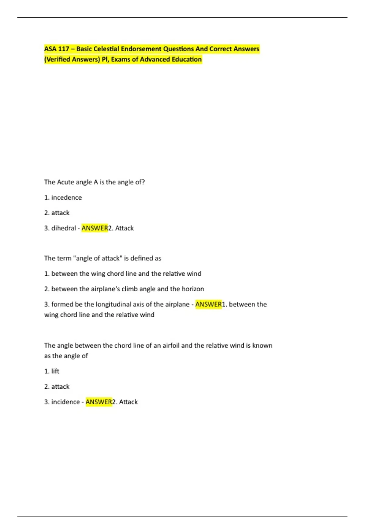 ASA 117 – Basic Celestial Endorsement Questions And Correct Answers