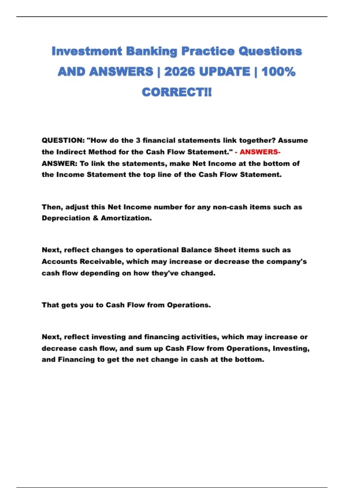 Investment Banking Practice Questions 2026 | Verified Answers & Updated Content