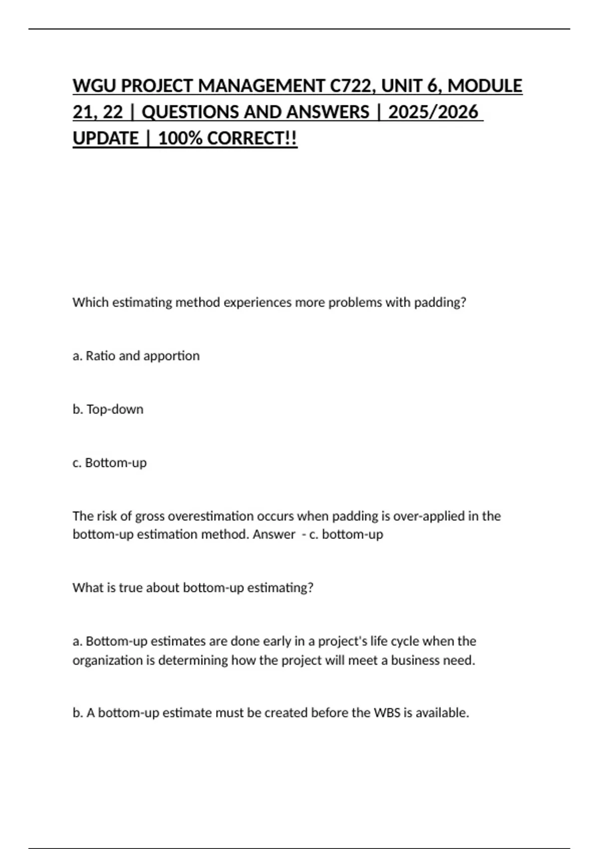 d. Bottom-up estimates are early approximations of cost. Answer - c. Creating