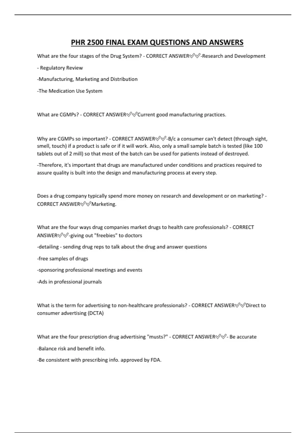 PHR 2500 FINAL EXAM QUESTIONS AND ANSWERS