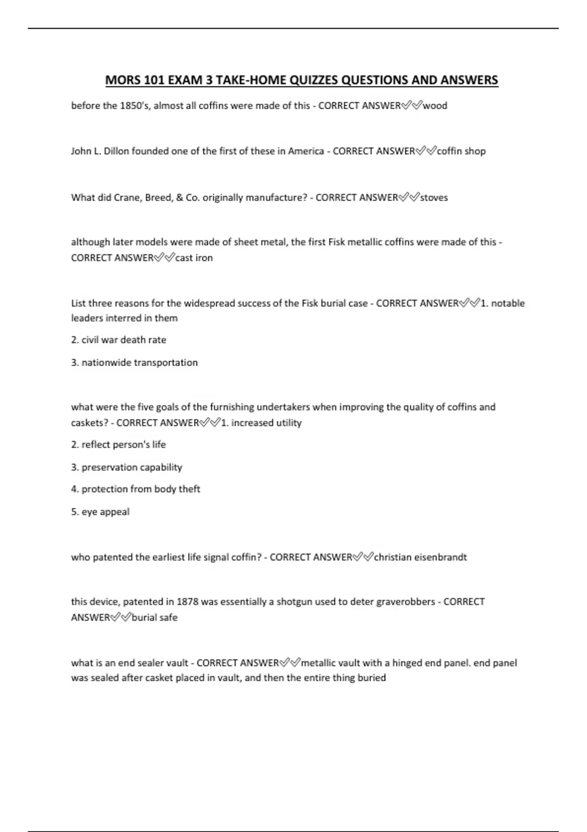 MORS 101 EXAM 3 TAKE-HOME QUIZZES QUESTIONS AND ANSWERS