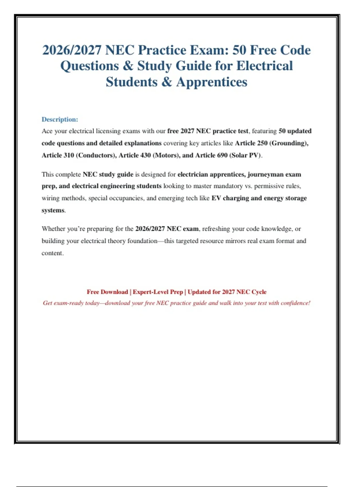 Free Download | Expert-Level Prep | Updated for 2027 NEC Cycle