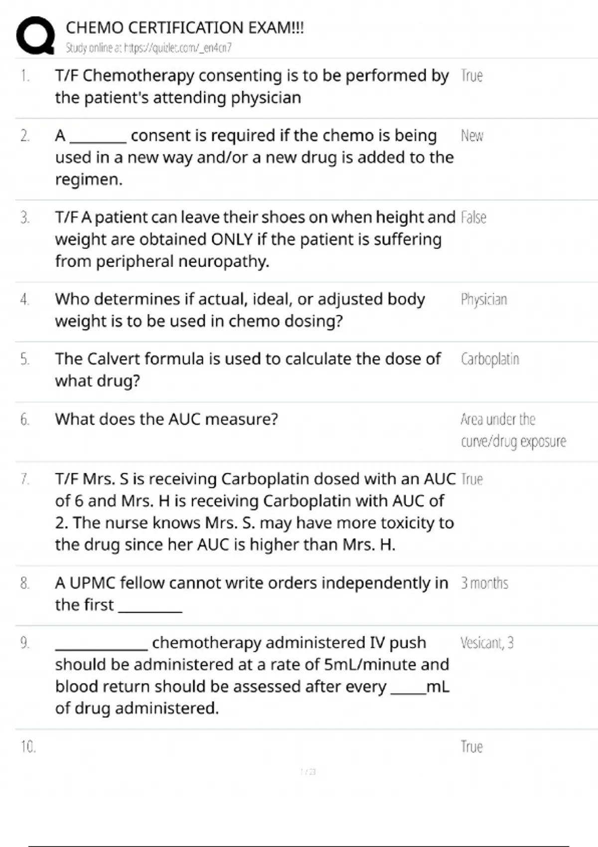 - chemo admin study guide