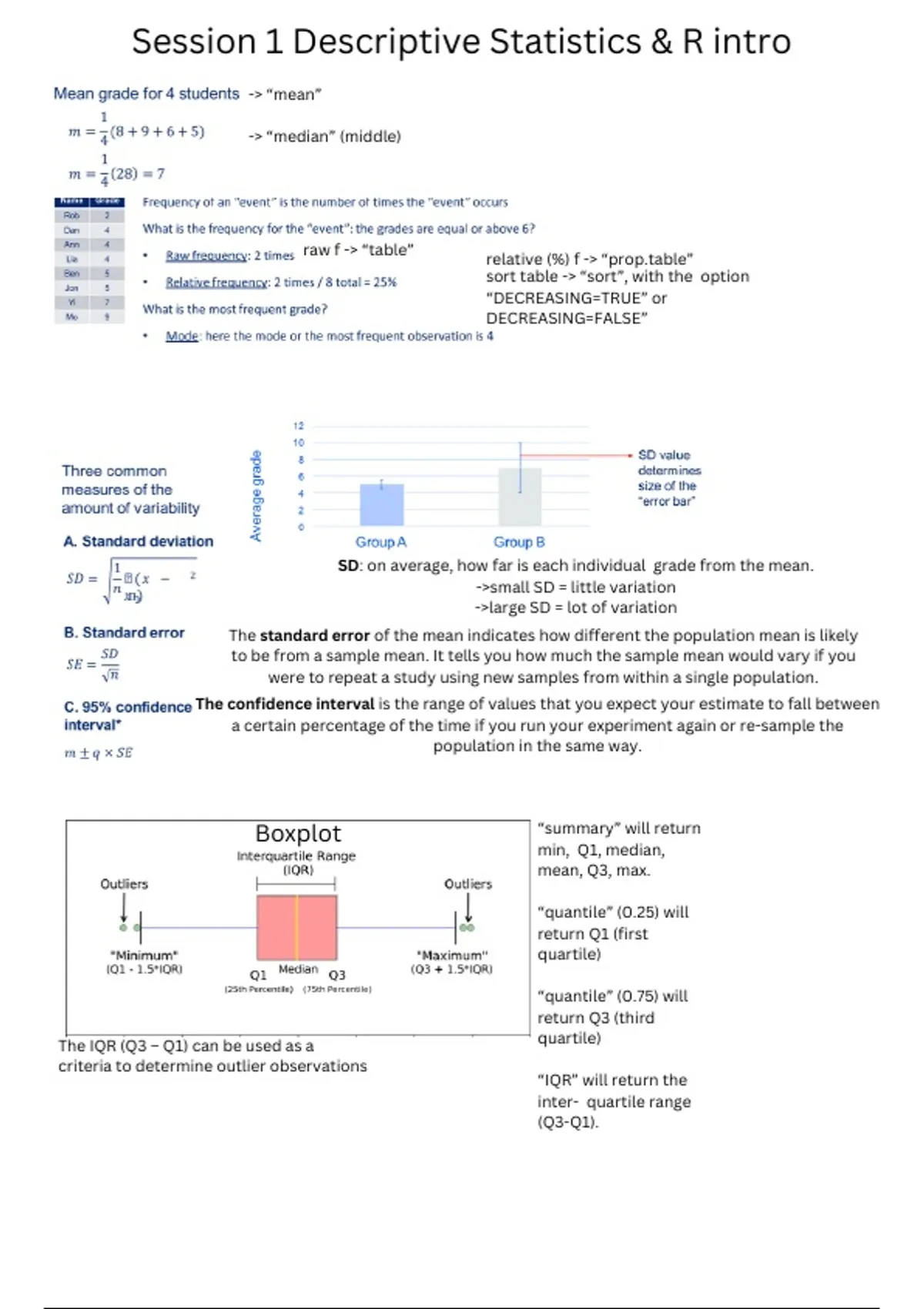 Session 1 Descriptive Statistics & R intro