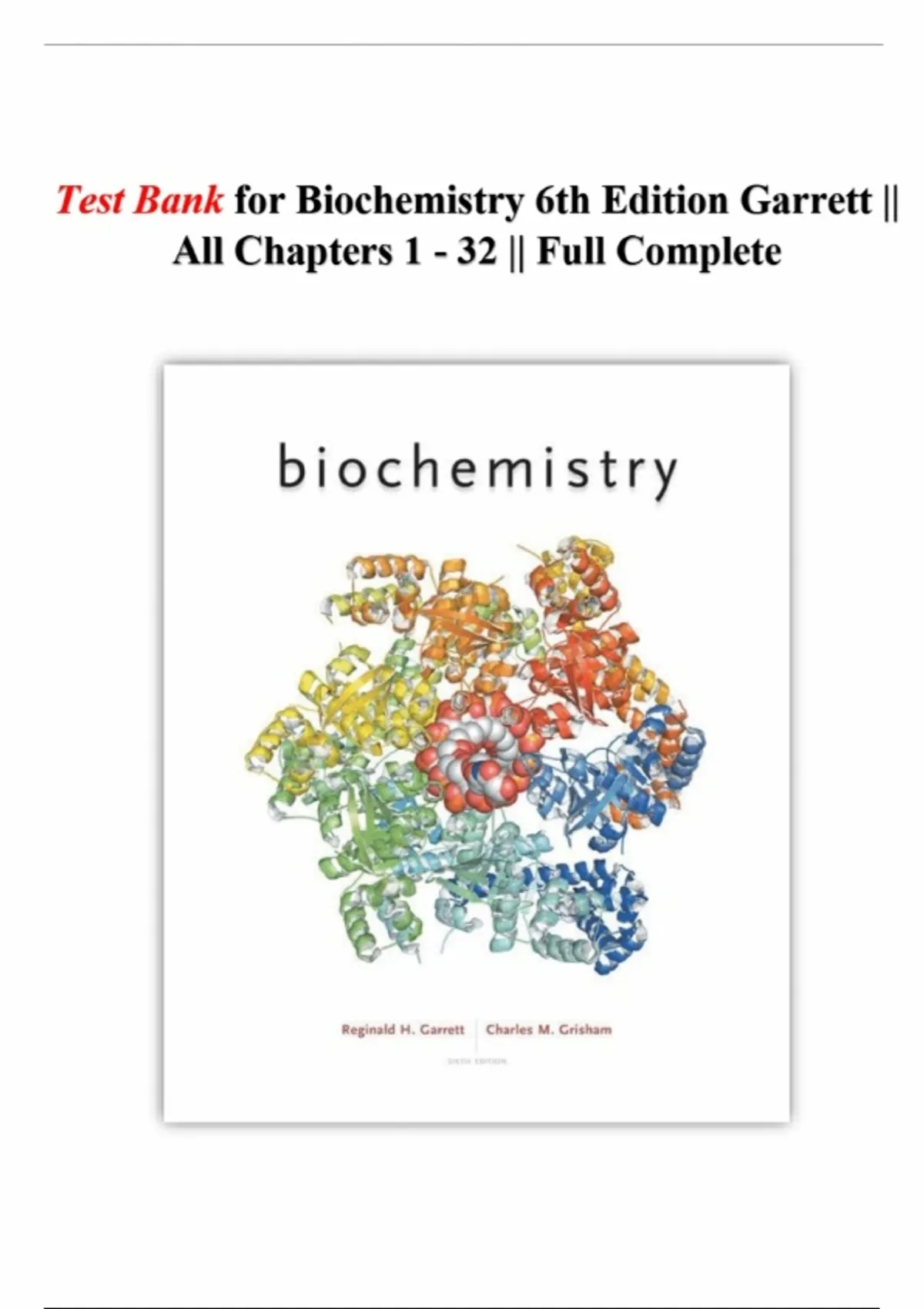 Test Bank for Biochemistry 6th Edition | Garrett | All Chapters 1–32 | Fully Complete | Updated 2026