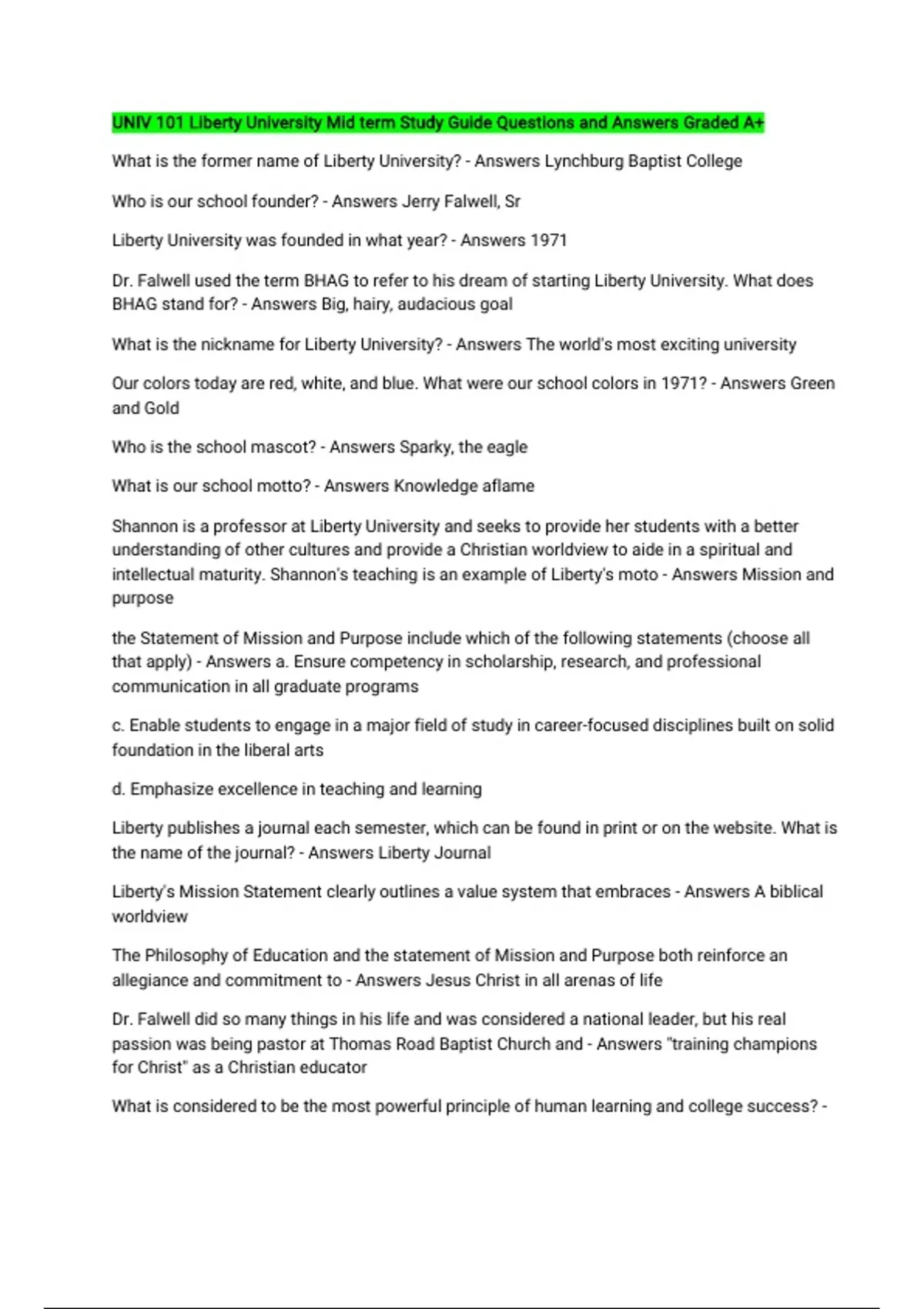Liberty's Mission Statement clearly outlines a value system that embraces - Answers A biblical