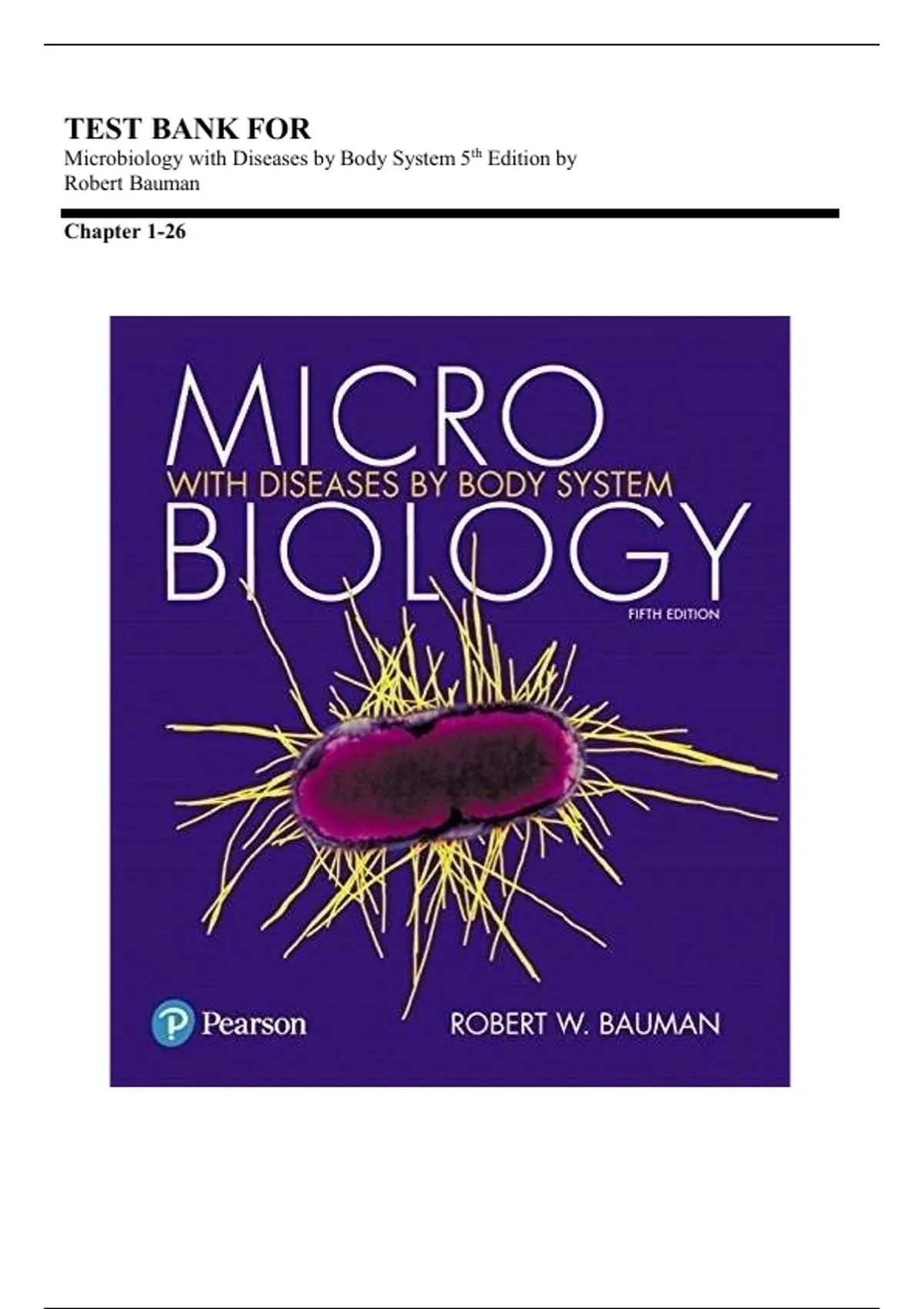 Test Bank For Microbiology with Diseases by Body System 5th Edition by Robert Bauman | Chapters 1–26 | Complete 100% Guide A+