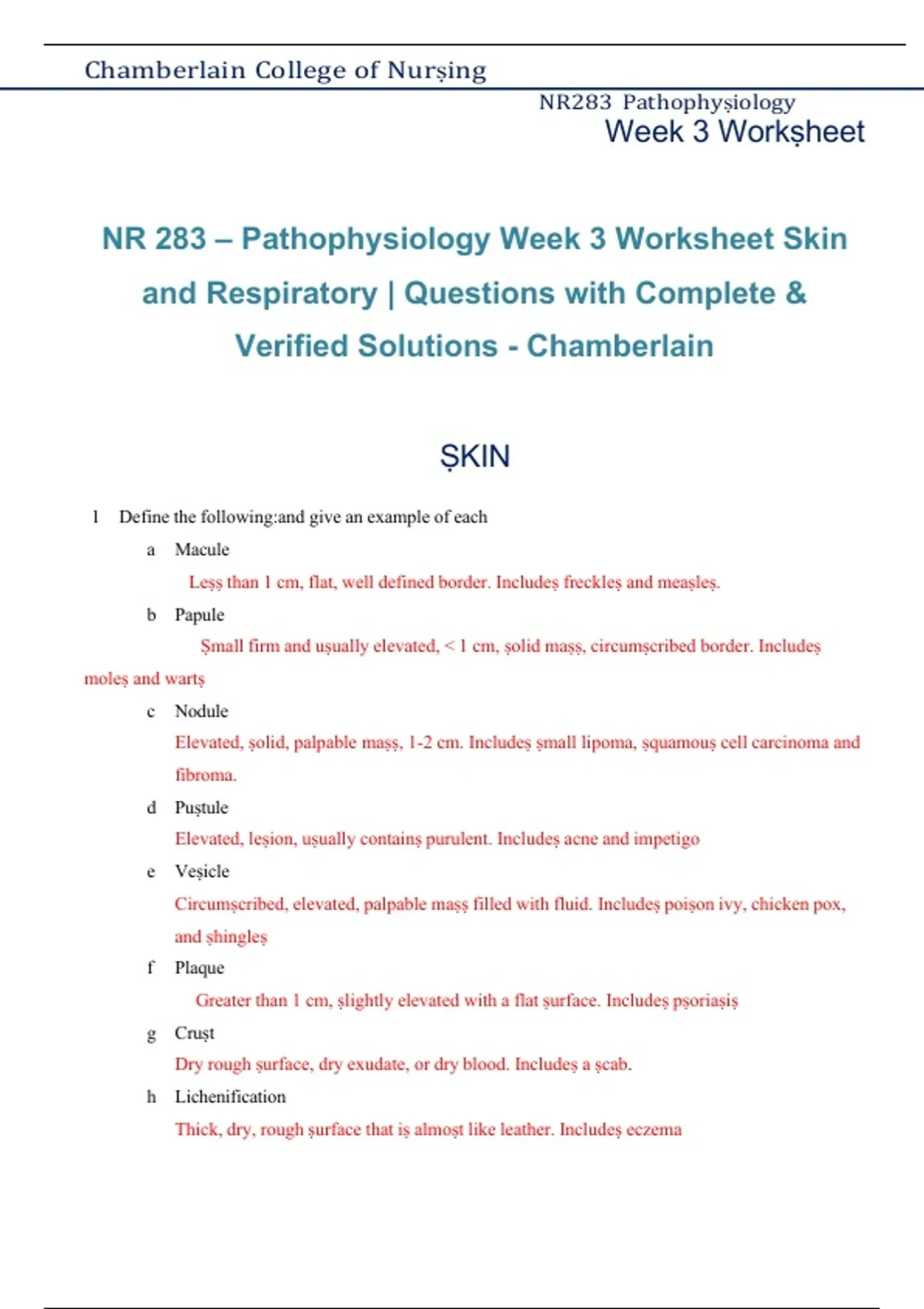 NR 283 – Pathophysiology Week 3 Worksheet Skin