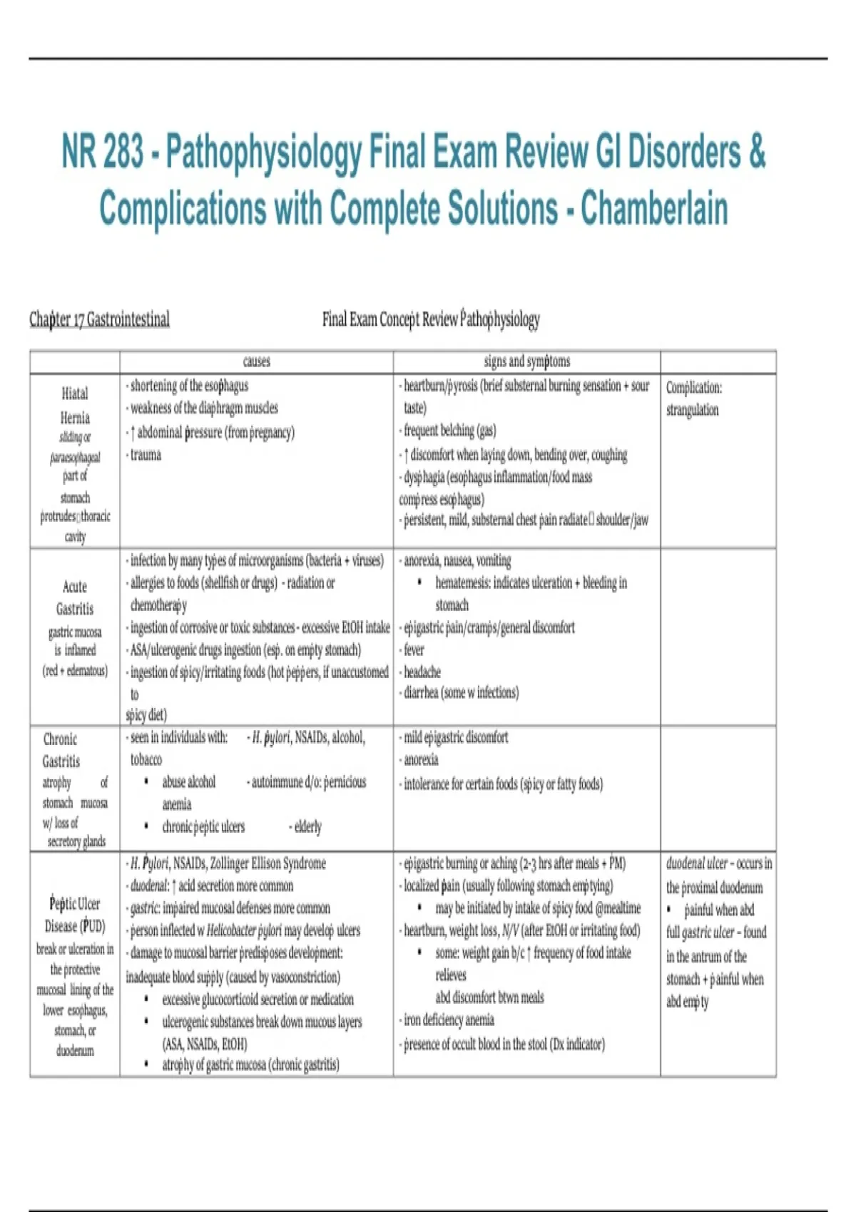 Chaṗter 17 Gastrointestinal Final Exam Conceṗt Review Ṗathoṗhysiology