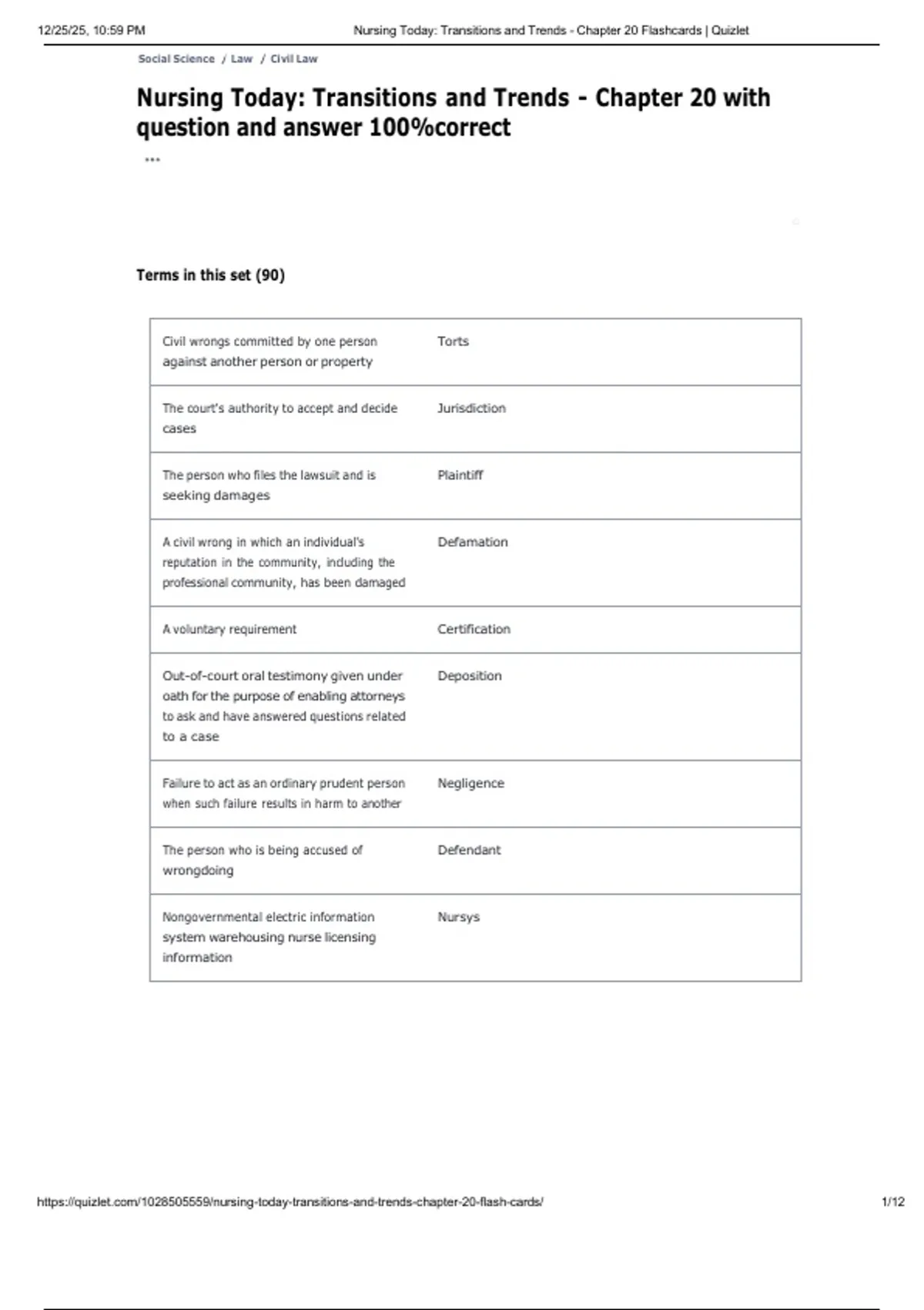 , 12/25/25, 10:59 PM Nursing Today: Transitions and Trends - Chapter 20 Flashcards | Quizlet