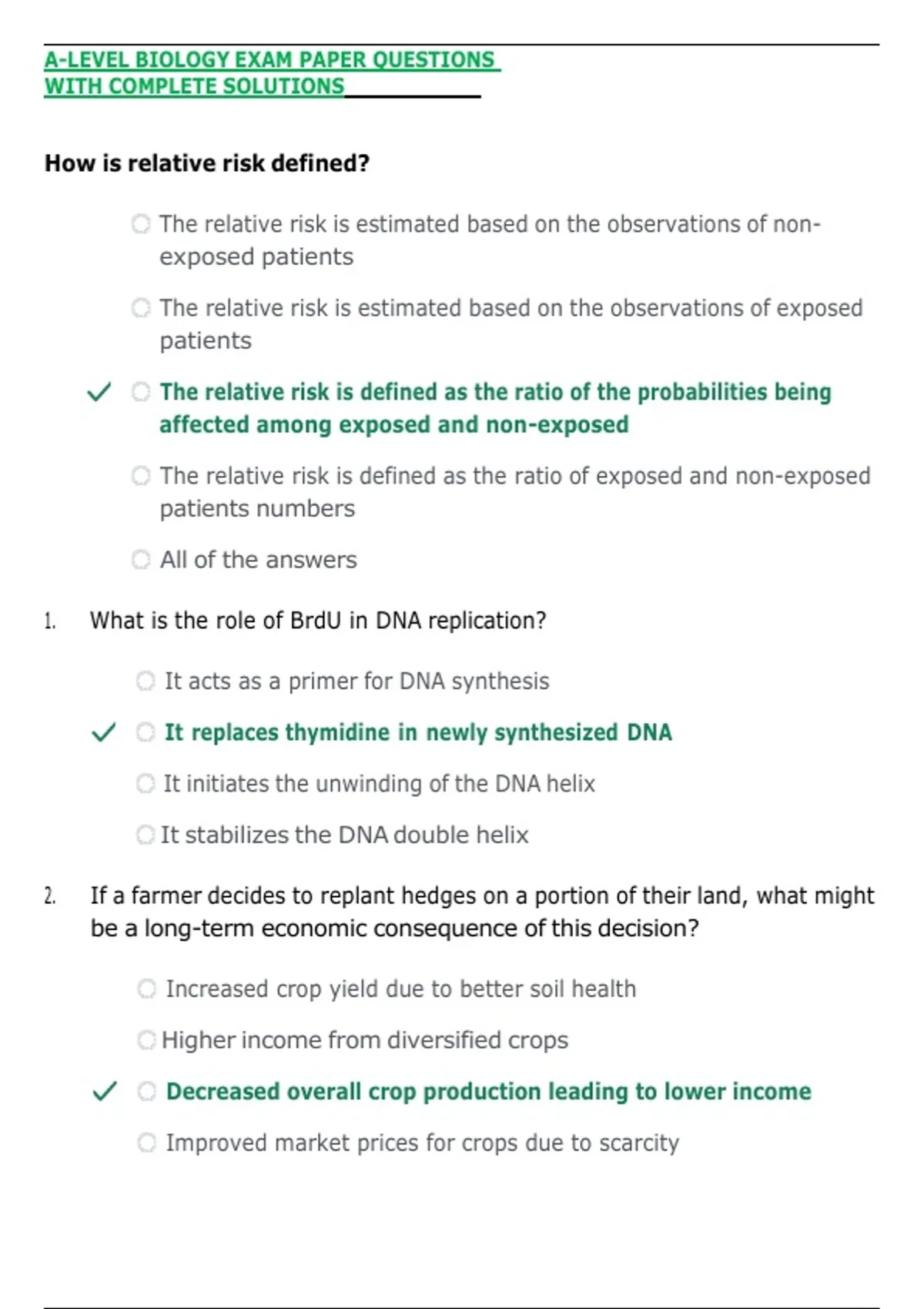 A-LEVEL BIOLOGY EXAM PAPER QUESTIONS WITH COMPLETE SOLUTIONS