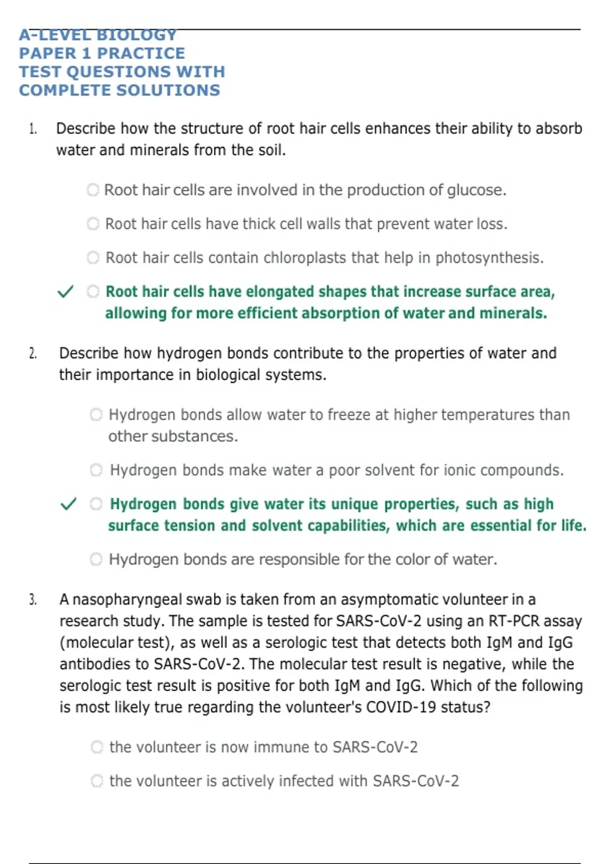 1. Describe how the structure of root hair cells enhances their ability to absorb