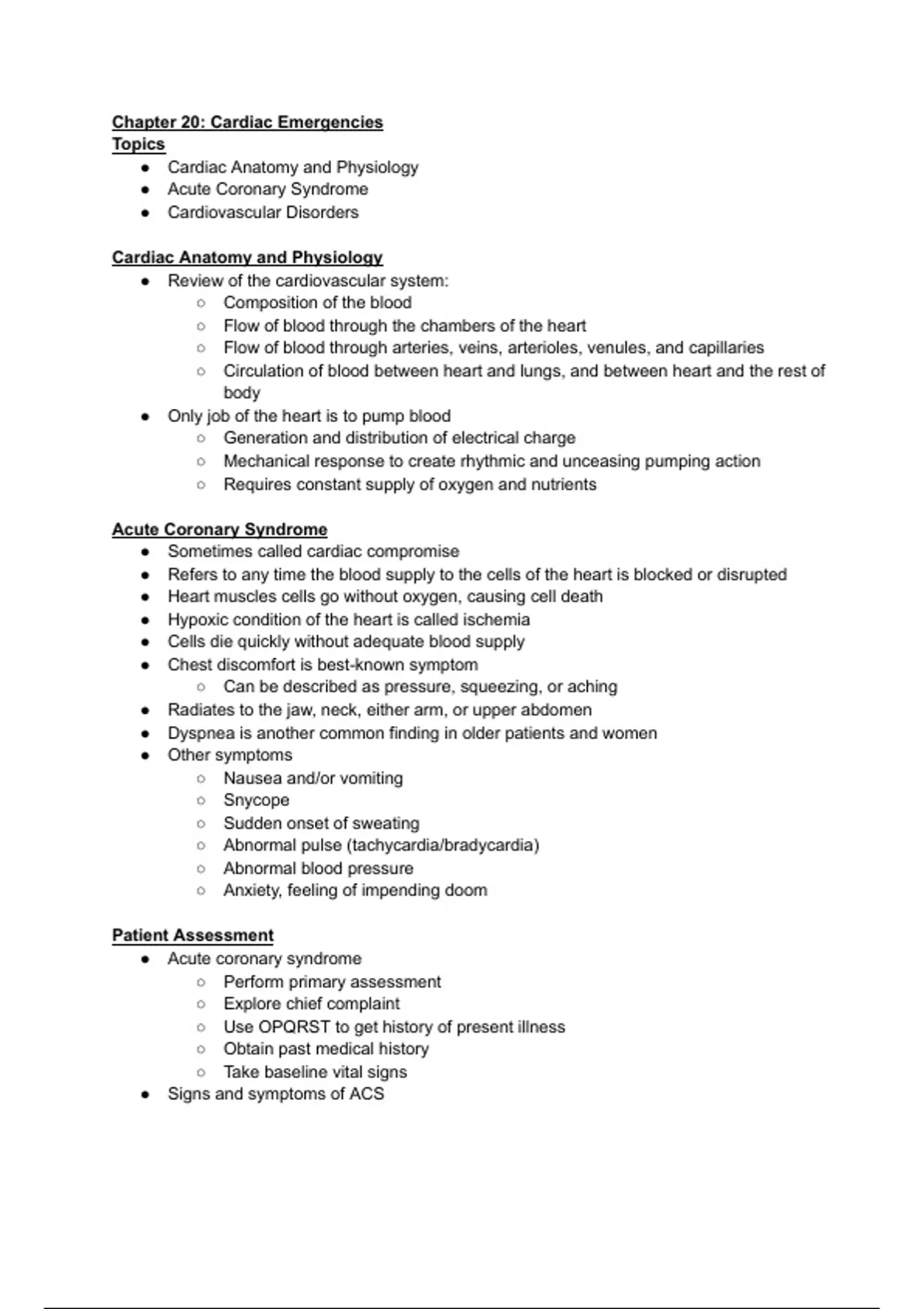 Chapter 20: Cardiac Emergencies