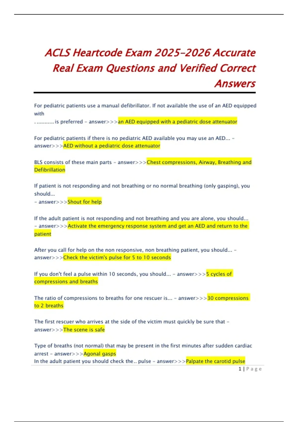ACLS HeartCode Exam 2025–2026 | Real Questions & Verified Answers