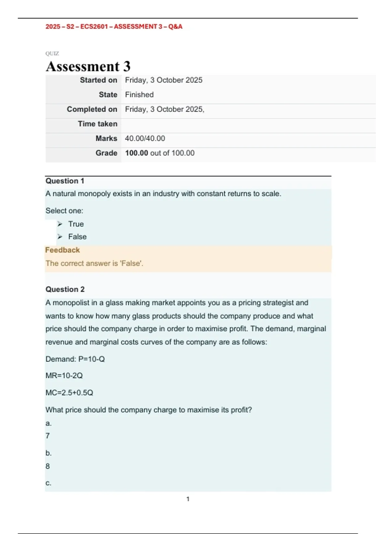 2026 - ECS2601 - ASSESSMENT 3 - QUESTIONS AND ANSWERS - SEMESTER 1