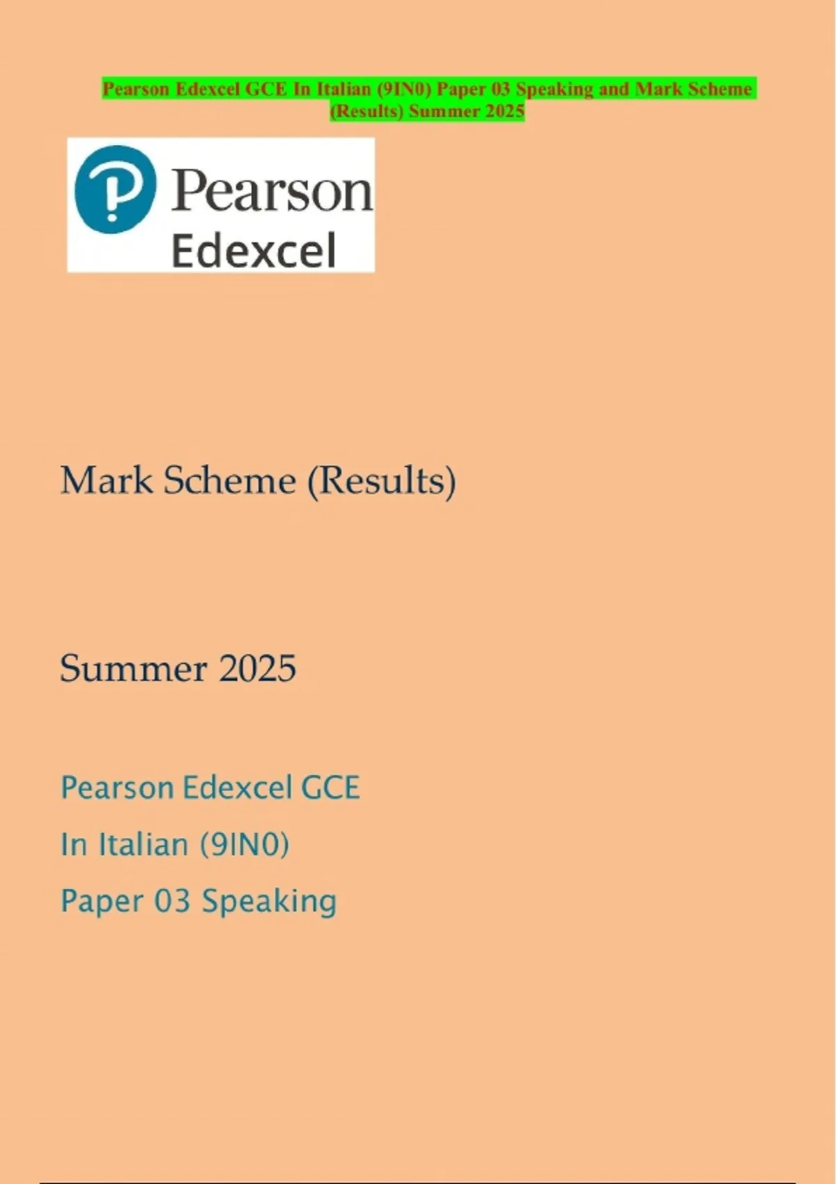 Pearson Edexcel GCE In Italian (9IN0) Paper 03 Speaking and Mark Scheme (Results) Summer 2025