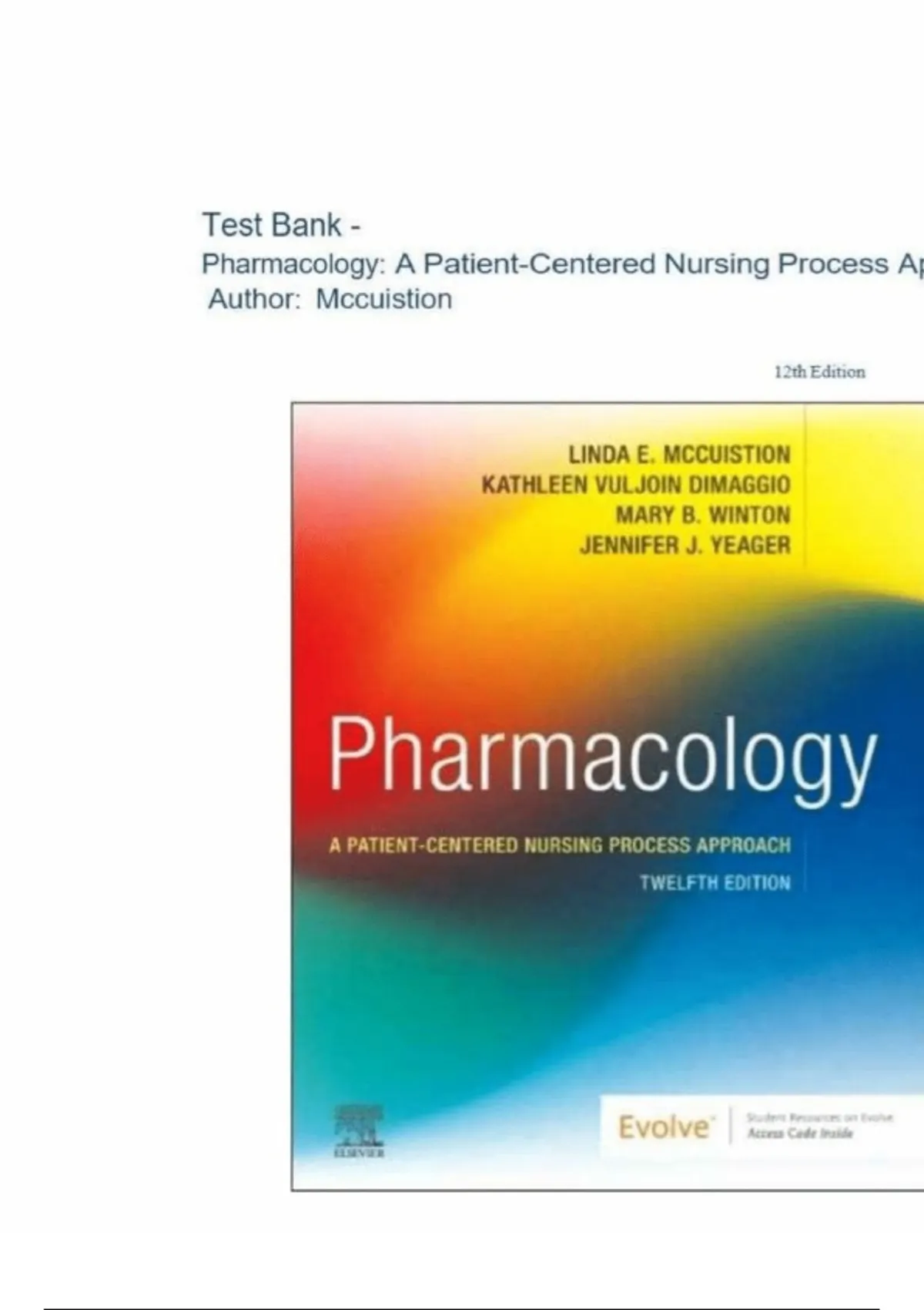Test Bank for Pharmacology: A Patient-Centered Nursing Process Approach 12th Edition by Linda E. McCuistion, Verified Complete Chapters|| Newest Edition