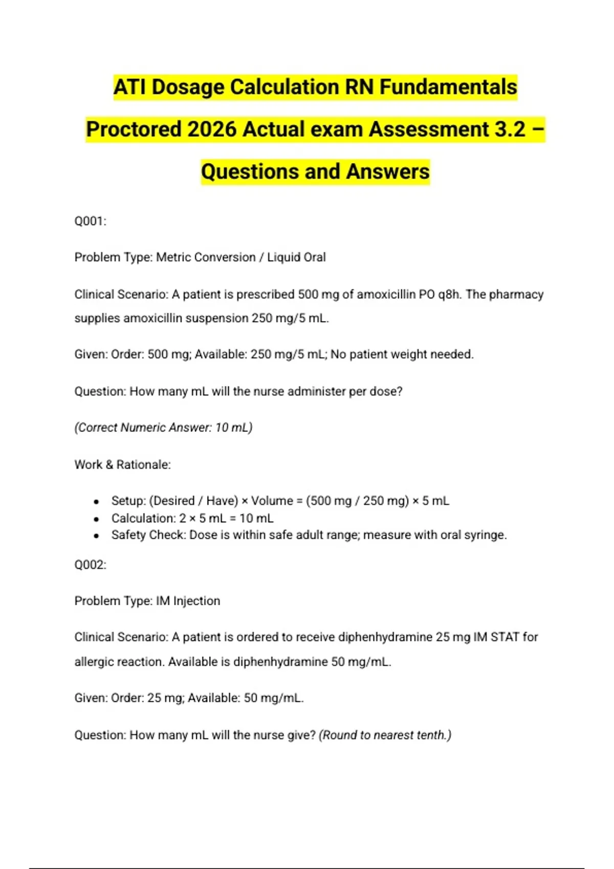 ATI Dosage Calculation RN Fundamentals