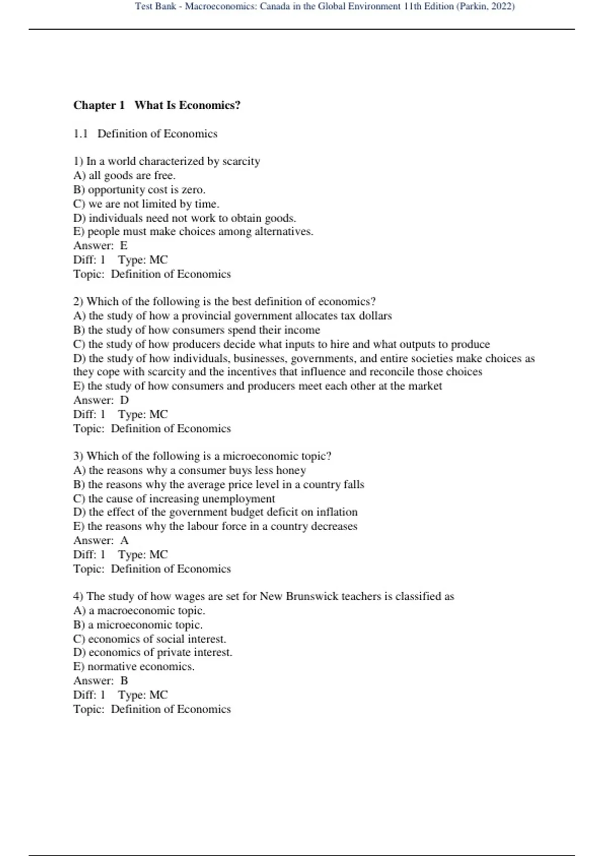 , Test Bank - Macroeconomics: Canada in the Global Environment 11th Edition (Parkin, 2022)