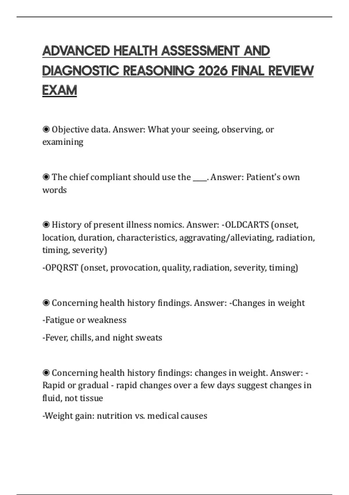 ADVANCED HEALTH ASSESSMENT AND DIAGNOSTIC REASONING 2026 FINAL REVIEW EXAM