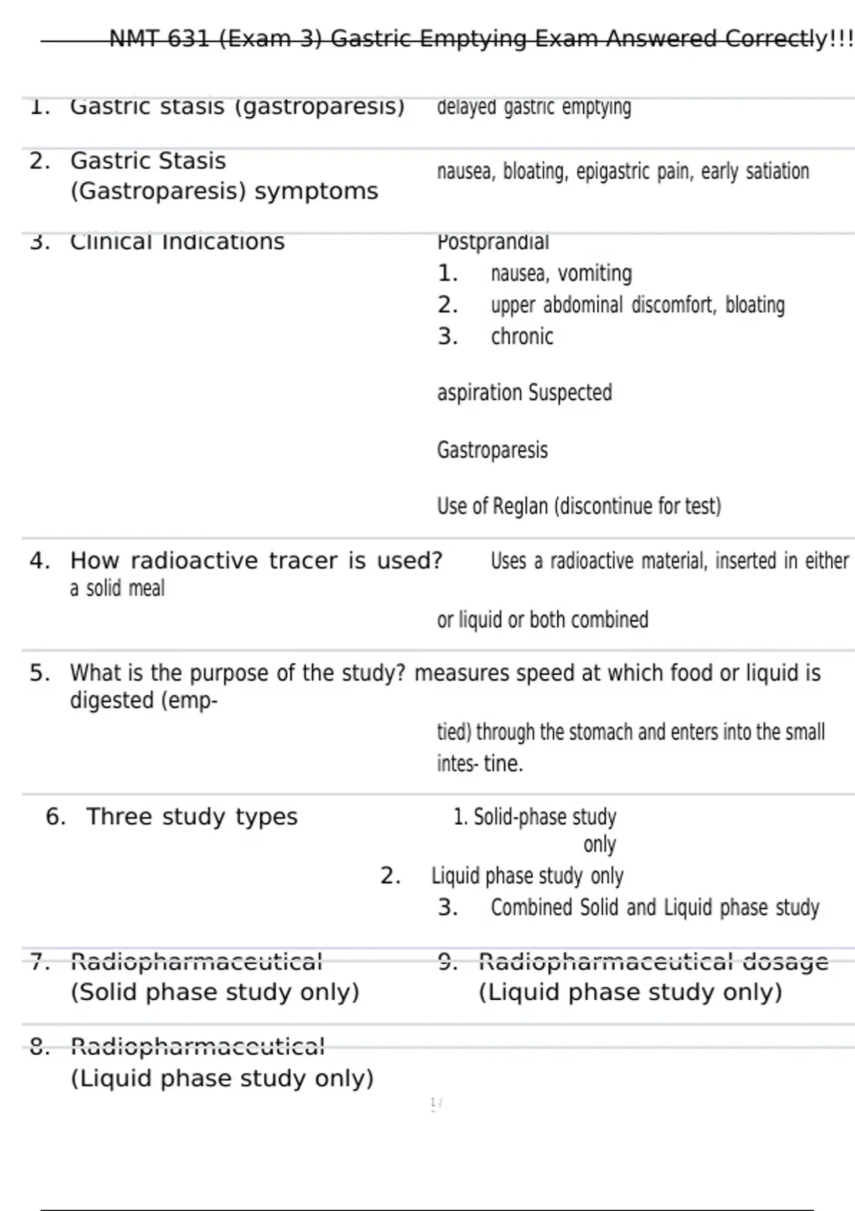 , NMT 631 (Exam 3) Gastric Emptying Exam Answered Correctly!!!