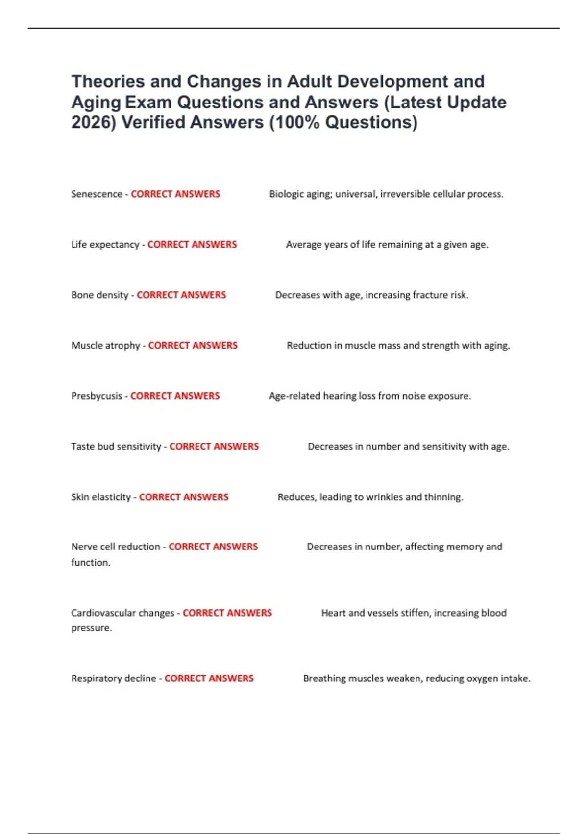 Aging Exam Questions and Answers (Latest Update