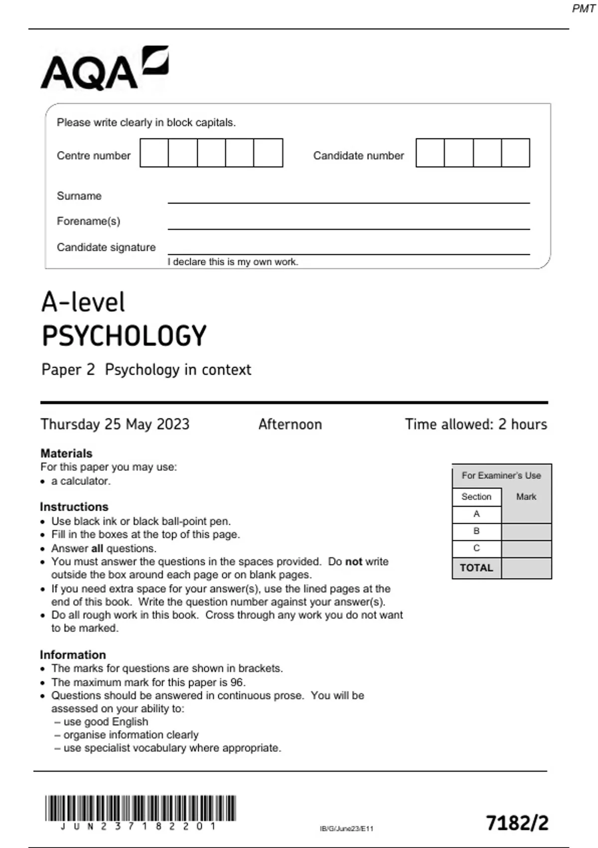 Thursday 25 May 2023 Afternoon Time allowed: 2 hours