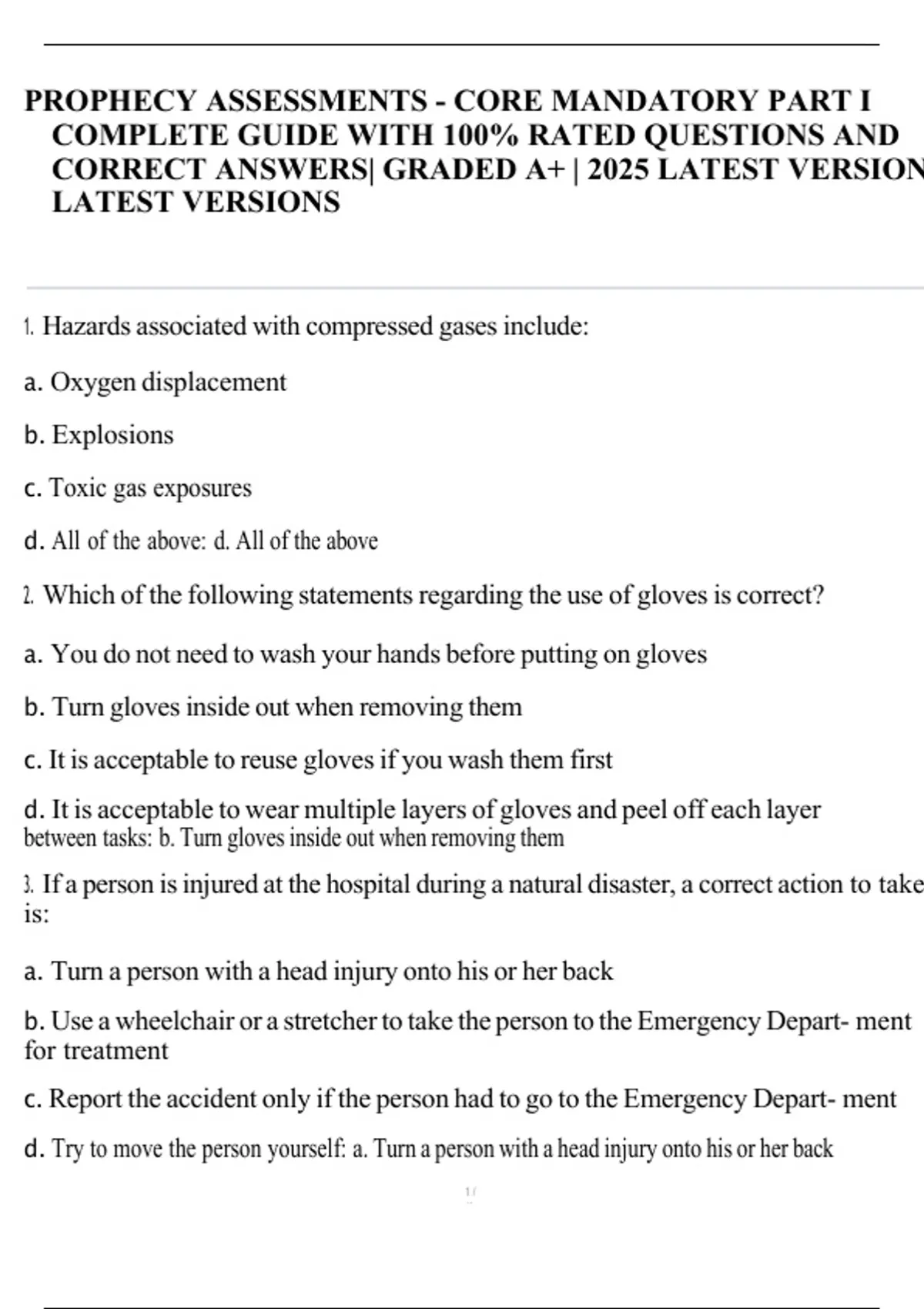 PROPHECY ASSESSMENTS - CORE MANDATORY PART I COMPLETE GUIDE WITH 100% RATED QUESTIONS AND CORRECT ANSWERS