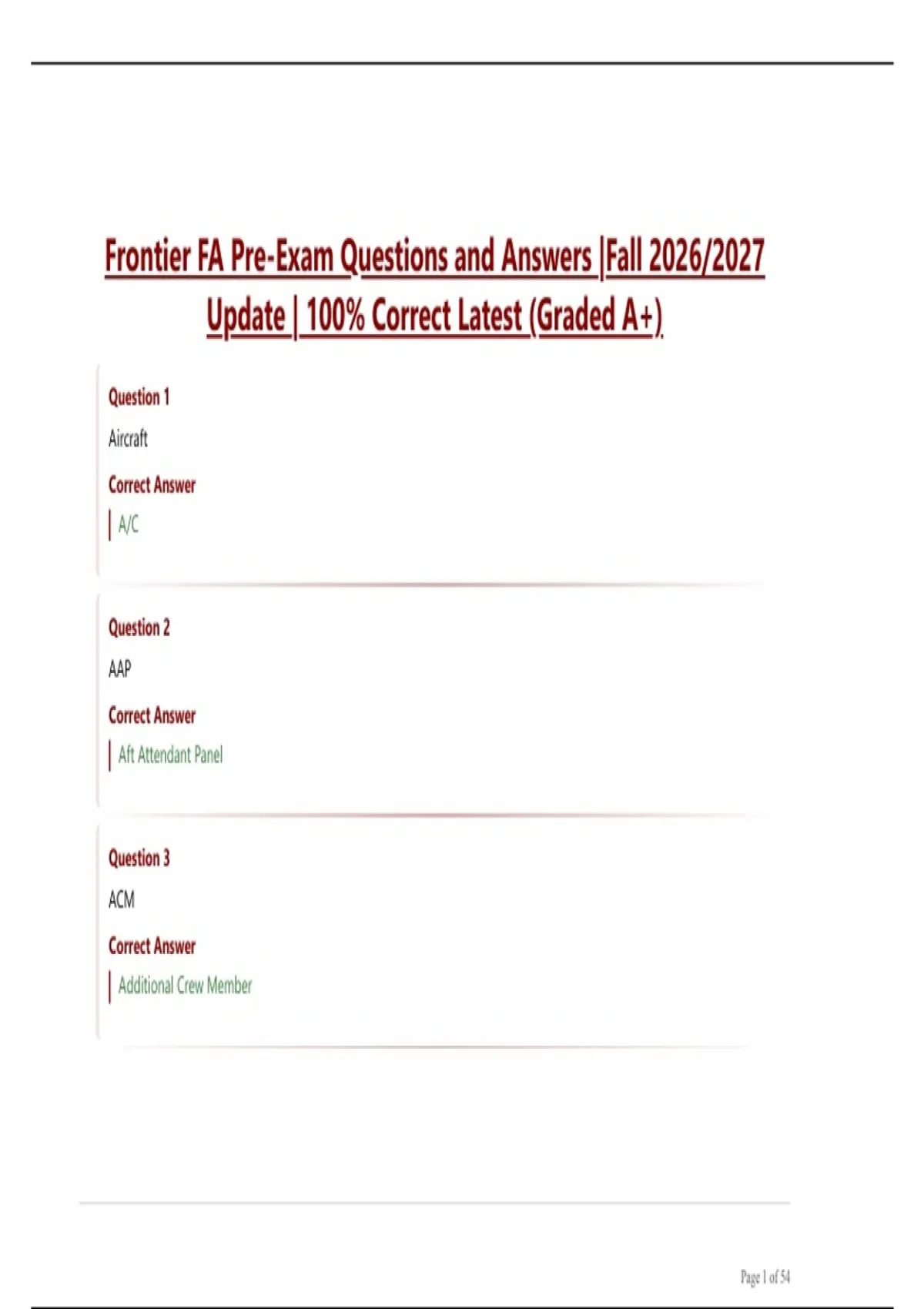 Frontier FA Pre-Exam Questions and Answers |Fall 2026/2027