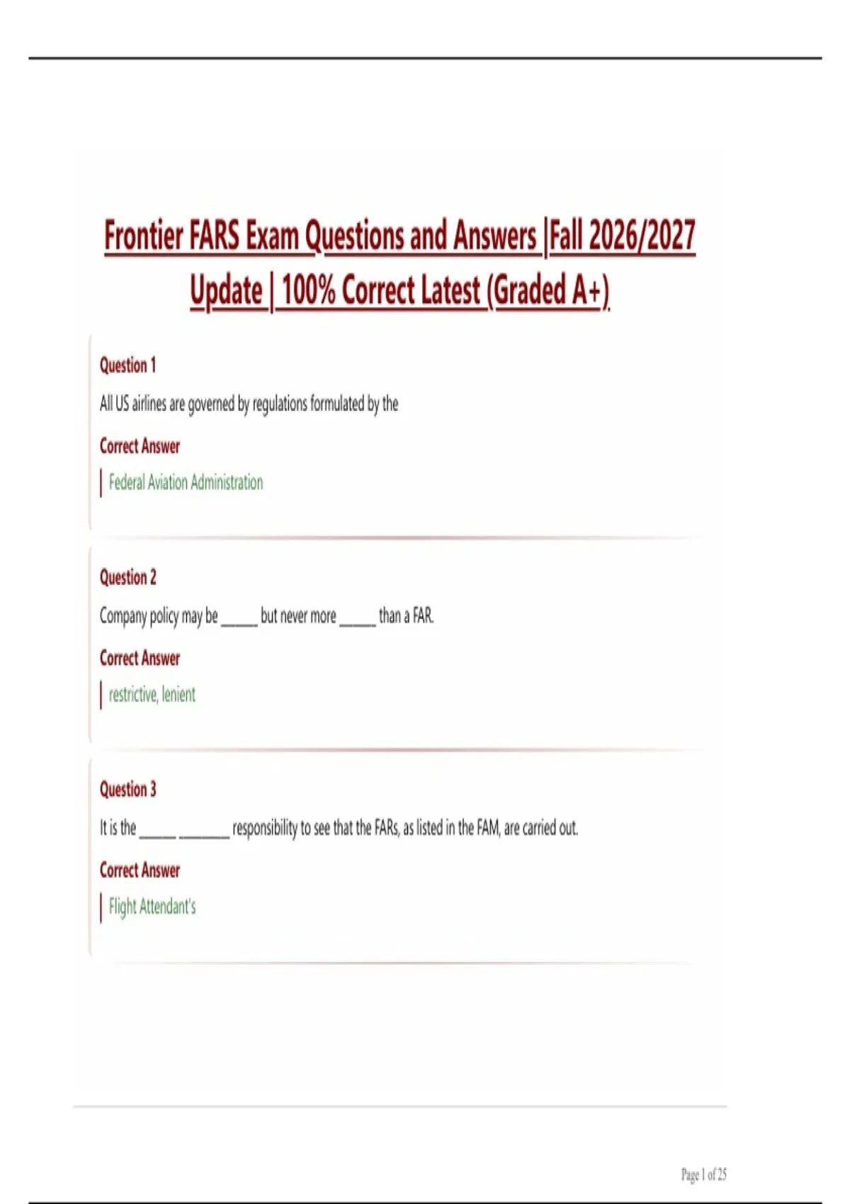 Frontier FARS Exam Questions and Answers |Fall 2026/2027