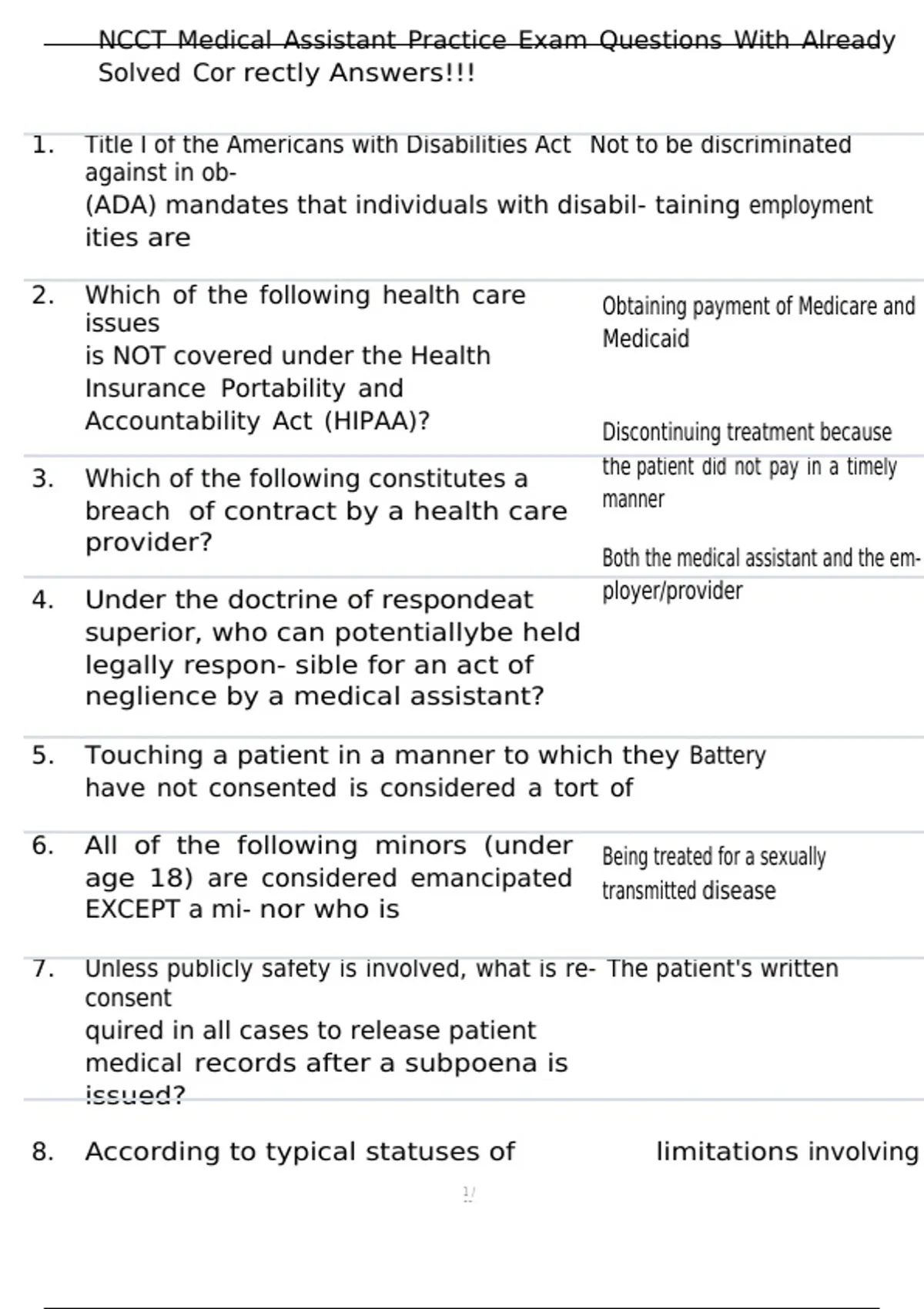 , NCCT Medical Assistant Practice Exam Questions With Already