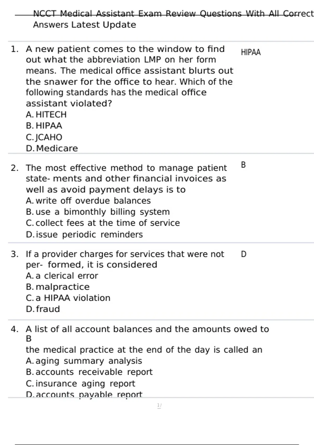 , NCCT Medical Assistant Exam Review Questions With All Correct