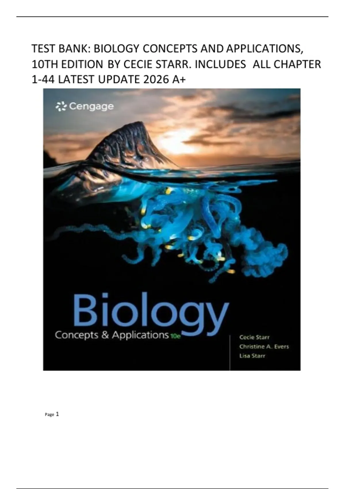 TEST BANK: BIOLOGY CONCEPTS AND APPLICATIONS,