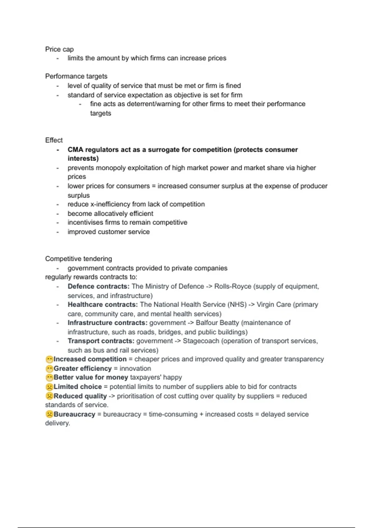 -​ Transport contracts: government -> Stagecoach (operation of transport services,