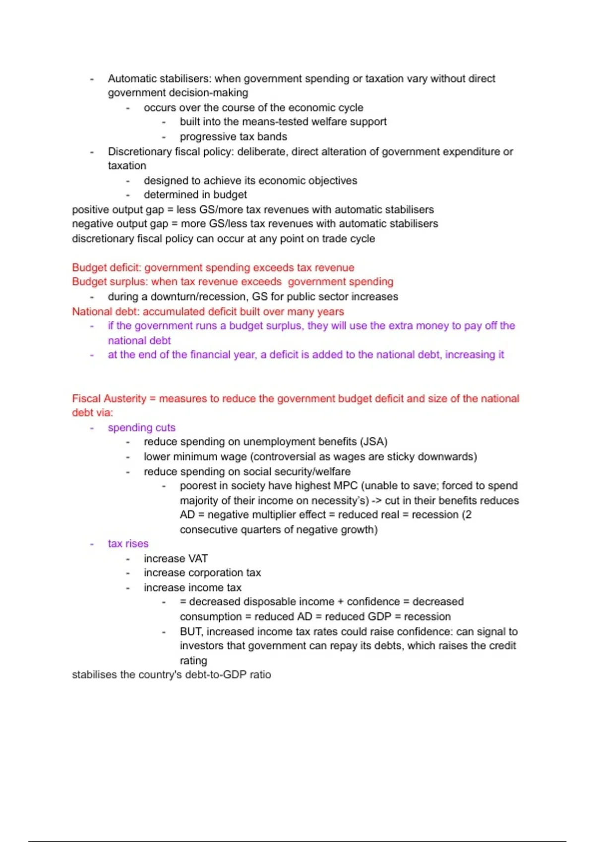 -​ Automatic stabilisers: when government spending or taxation vary without direct