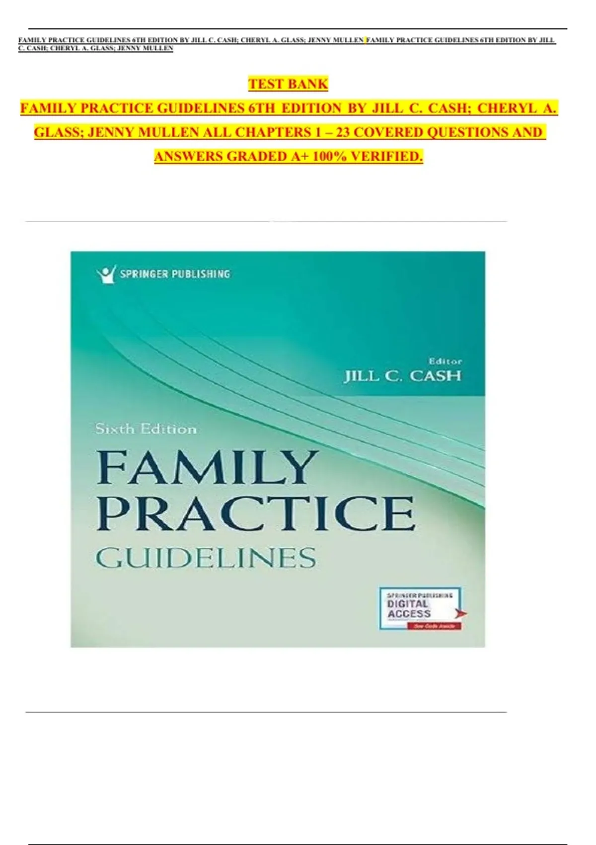 , FAMILY PRACTICE GUIDELINES 6TH EDITION BY JILL C. CASH; CHERYL A. GLASS; JENNY MULLEN FAMILY PRACTICE GUIDELINES 6TH EDITION BY JILL