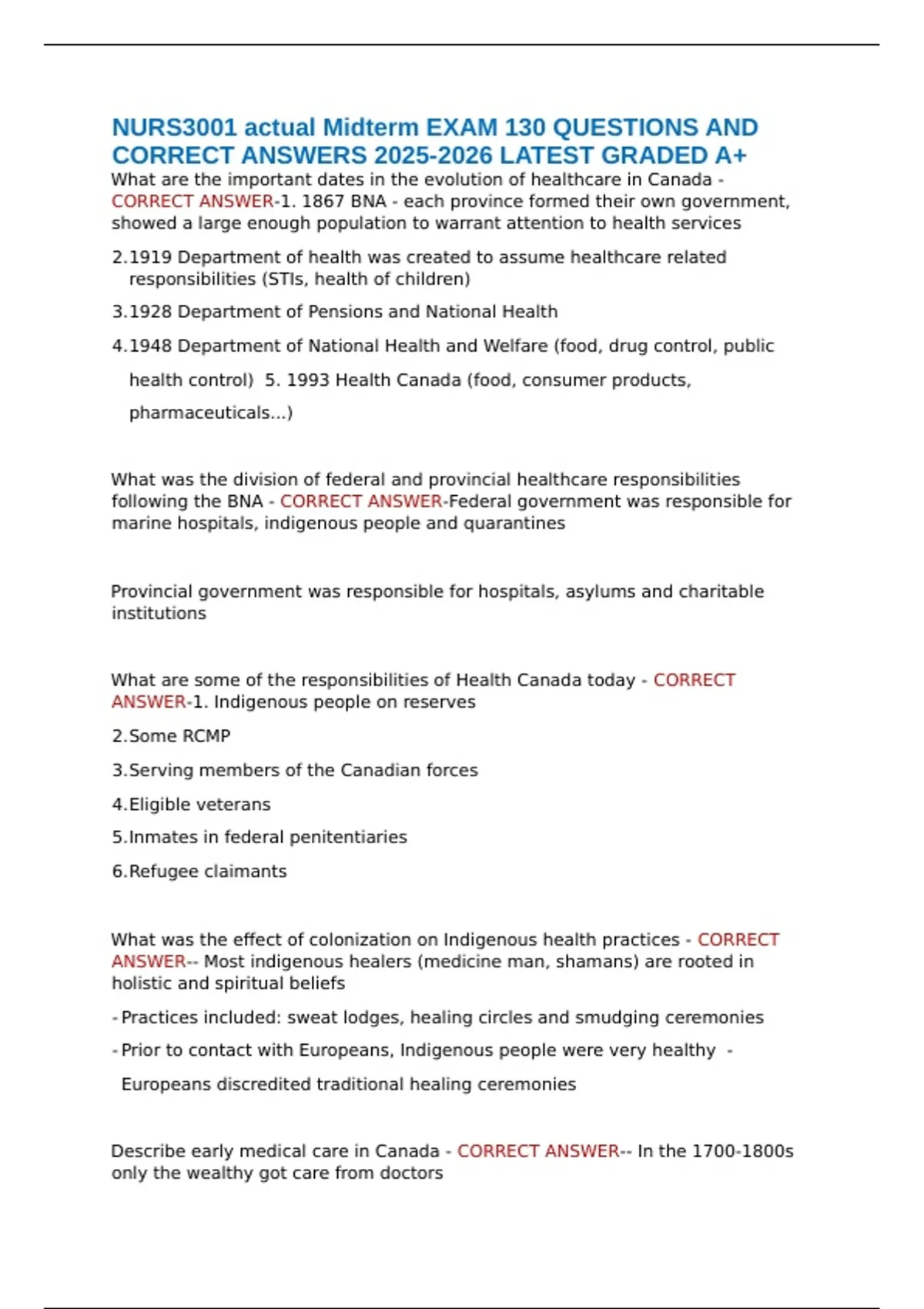 Describe early medical care in Canada - CORRECT ANSWER-- In the 1700-1800s