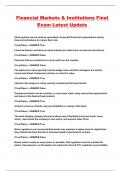 This document is a comprehensive test bank for Financial Markets and Institutions (8th Edition) by Anthony Saunders. It includes verified multiple-choice questions, true/false items, and short-answer questions covering all chapters of the textbook. Each question is accompanied by accurate answer keys, making it ideal for exam preparation and self-assessment. The material aligns with core topics such as interest rates, bond pricing, monetary policy, financial intermediaries, and market structures...