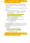 Med-Surg II HESI Test Bank_ Retake on September 2022, all answers verified Correct. 1. A nurse is collecting data from a client who has a possible cataract. Which of the following manifestations should the nurse expect the client to report? 1) Decreased color perception 2) Loss of peripheral vision 3) Bright flashes of light 4) Eyestrain 2. A nurse is assisting with the care of a client immediately following a lumbar puncture. Which of the following actions should the nurse take? (Select all tha...