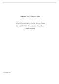WK7Proj Reifschneider A.pdf Assignment Week 7: Interview Subject School of Counseling and Human Services, Walden University COUN 6100-34: Introduction to Clinical Mental Health Counseling 14:51:20 GMT -05:00 Assignment Week 7: Interview Subject Mental Health Counselors work with patients who suffer from behavioral, cognitive, or emotional challenges through therapy promoting well-being. Counselors are trained and use a variety of modalities such as psychotherapy to guide patients thro...