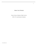 MD2WK3 Discussion McNairB EDUC 1 Module 2, Week 3 Discussion Master of Science in Education, Walden University EDUC 6733: Action Research for Educators 15:00:16 GMT -05:00 How is data used in your educational setting? In your classroom? Data is the foundation of my classroom and school system. An essential component of education is for classroom decisions to be driven by data (Mandinach, & Gummer, 2016). Data is used to enhance students learning and outcomes. Data is used in my classroo...
