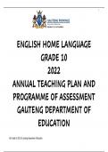 ENGLISH HOME LANGUAGE GRADE 10 2022 ANNUAL TEACHING PLAN AND PROGRAMME OF ASSESSMENT GAUTENG DEPARTMENT OF EDUCATION