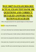 This WGU D027 OA Exam Test Bank (2024–2025) is a comprehensive and exam-focused study resource designed to help Western Governors University students confidently pass the D027 Organizational Behavior and Leadership Objective Assessment. The document contains 100 high-quality, exam-style questions paired with correct, detailed answers and clear rationales, ensuring deep understanding of each concept tested.