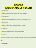 This comprehensive Adult Health Nursing Exam 3 study guide is a detailed, exam-ready resource designed for nursing students preparing for Adult Health / Medical-Surgical Nursing exams. The document contains well-structured questions with clear, verified answers, covering all major concepts typically tested in Exam 3.