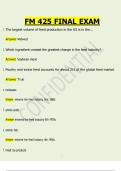 This document is a complete final exam study guide for FM 425 – Feed Manufacturing, presented in a clear question-and-answer format that mirrors the structure, terminology, and difficulty level of the actual final exam. It is designed to help students efficiently review key concepts, definitions, calculations, and practical applications tested in feed manufacturing courses.