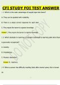 This document contains study and test answer material for the CFI FOI (Fundamentals of Investigation) course, a core component of the Certified Financial Investigator program. It focuses on essential investigative concepts such as investigative planning, evidence identification, information gathering, documentation, interviewing techniques, legal and ethical considerations, and analytical thinking used in financial and fraud investigations.