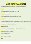 This document contains a complete AMT 287 final exam with questions and corresponding answers, focused on advanced aircraft maintenance technology topics. It is intended for exam preparation and review, helping students reinforce technical knowledge, regulatory understanding, and applied maintenance concepts required for successful course completion.