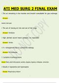 This document contains a complete ATI Medical–Surgical Nursing II (Med Surg 2) final exam with clearly written questions and corresponding answers. It covers major exam topics such as respiratory disorders, cardiac conditions, shock, burns, neurological emergencies, vascular disorders, medications, and critical care nursing interventions. The material is well suited for final exam preparation, ATI-style review, and focused study for nursing students