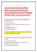 LA County Code Enforcement Officer Written Exam Questions And Correct Answers (Verified Answers) Plus Rationales 2026-2027 Q&A | Instant Download Pdf