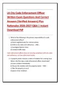 LA City Code Enforcement Officer Written Exam Questions And Correct Answers (Verified Answers) Plus Rationales 2026-2027 Q&A | Instant Download Pdf